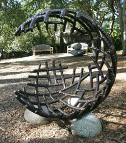 The elegant yet informal garden includes a canopy of Monterey pine and native live oak, flowering trees and perennials. A circular path winds through the garden, and seating areas offer visitors a chance to rest and reflect on the works being viewed.